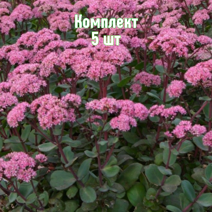 Набор из 5 саженцев очитка Crystal Pink (Матрона) — выгодное предложение 5 по цене 4. Неприхотичный многолетник до 40 см с сине‑зелёной листвой и пышными шапками светло‑розовых звёздчатых цветов в конце лета — осенью. На ярком солнце окраска листьев насыщается. Морозостойкий, быстро формирует компактный куст и долго сохраняет декоративность.