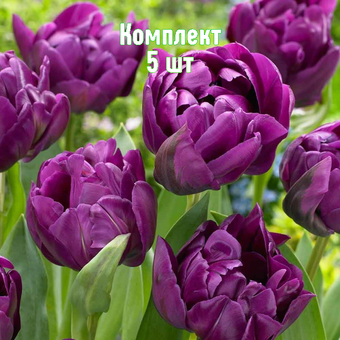 Яркий махровый поздний тюльпан Negrita Double с крупными пионовидными бутонами (диаметром 15+ см) — насыщенный бордово-фиолетовый оттенок с изумрудными штрихами на округлых лепестках. Бутоны раскрываются медленно, обеспечивая продолжительное цветение более 3 недель. Отлично подходит для клумб, срезки и выгонки в домашних условиях.